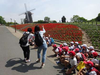 2年生が遠足で鶴見緑地に行きました。前日まで雨が心配されていましたが、その心配がうその様な晴天に恵まれ、元気よく歩いて行きました。