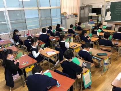 1年 図画工作科「玄関掲示板の 飾り作り」