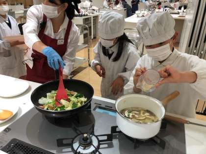 ご飯もふっくら炊き上がり、おみそ汁も出来上がりました!!