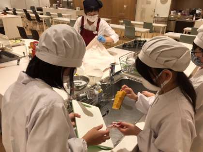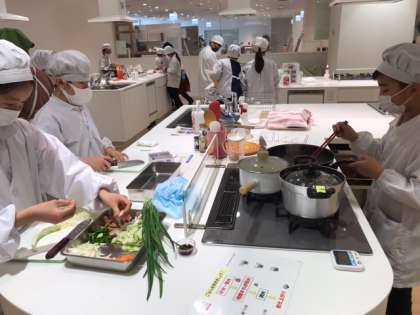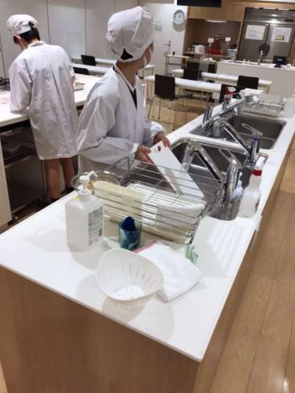 調理しながら、洗い物も並行して行っています。手際がよいです。