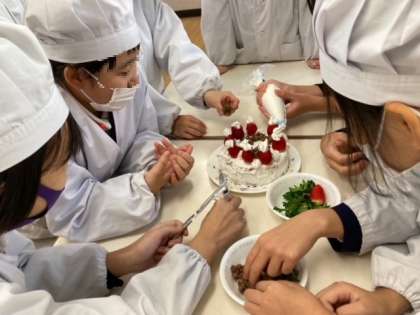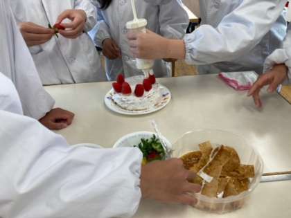 果物や菓子をトッピングして、さらに生クリームでデコレーション