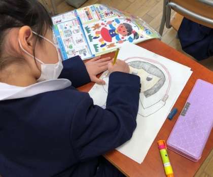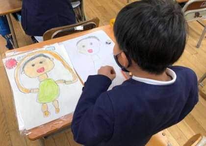 楽しそうに活動している自分の姿を描くことができました。転写して完成するまで作業が続きますが、作品が出来上がるのが今から楽しみです。
