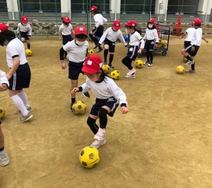 ドリブルをしたりシュートをしたりして、足でボールをうまくコントロールしていました。