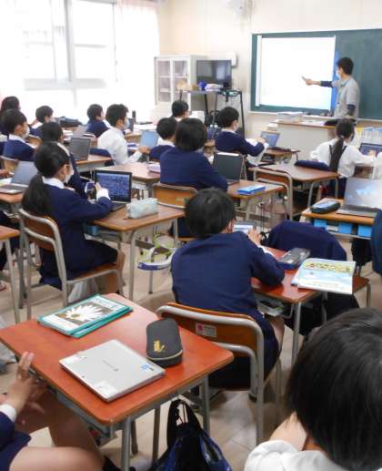 1人1台パソコンを使って、上空から写した南大江小学校の写真を見ました。この航空写真から南大江小学校の周りにはどんな建物があるのかを詳しく調べることができました。パソコンの使い方を覚え、学習の中でどのように活用できるかを考えていました。