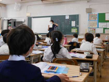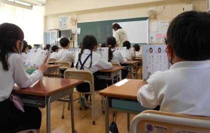 教科書を見ながら「あいうえお」の音読をしました。先生のあとに続いて元気よく音読しました。だんだんとスムーズに読むことができるようになって、音読が上手になってきました。
