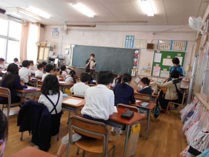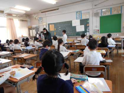 学校探検をする1年生に、学校にある教室を説明する文章を考えました。「給食室はどんなところだっただろう?」「保健室はどんなところだろう?」と思い出しながら1年生に説明するための文章を考えました。