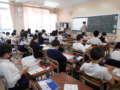 合同な図形の角の大きさや辺の長さはそれぞれどうなっているかを考えました。定規や分度器を使ったり、図形どうしを重ねたりして、角の大きさや辺の長さが同じになっていることを知ることができました。