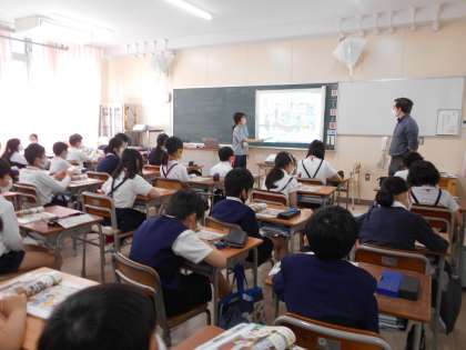 C-NETのJacob先生と一緒に学習しました。ball,cap,pen,eraserなどの身の回りのものを英語で発音しました。授業の後半は先生が発音した英単語を教科書から見つける「ポインティングゲーム」をして、楽しく活動しました。