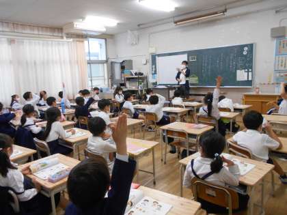 「じゃんけんぽん」の曲を聞いたり歌ったりしました。歌詞に合う振り付けを考えたり、友だちと一緒にじゃんけんをしたりして、楽しく活動することができました。