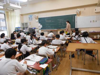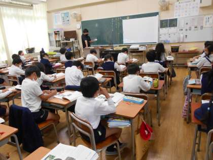 1・2段落の読み取りをしました。セミやバッタは、見つかりにくいように自分の体と同じ木や草に生息し、このような体の色を「保護色」ということを文章から読み取ることができました。