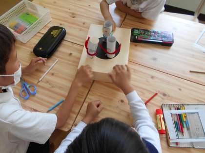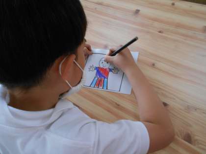 「とんとん相撲」を作って遊びました。作り方の説明をしっかり聞き、強そうなお相撲さんの絵を描きました。出来上がった「お相撲さん」を使って、みんなでたのしく「とんとん相撲」をして遊ぶことができました。