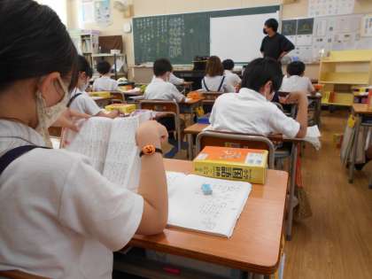国語辞典を使って、漢字の意味を調べました。「長」のつく言葉を発表し、「校長」などの「リーダー」の意味や、「身長」などの「長さ」の意味など、熟語から漢字の意味を考えることができました。