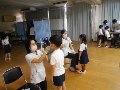1年生は、本日「眼科健診」を受けました。目に腫れはないかや、眼球運動がしっかりできているかを診てもらいました。先生に挨拶をしてから診てもらうことができました。