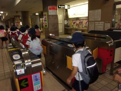 学校から堺筋本町駅まで歩き、駅の券売機で一人ひとりが自分で切符を買いました。そして扇町駅までグループごとに電車に乗り、キッズプラザへ向かいました。