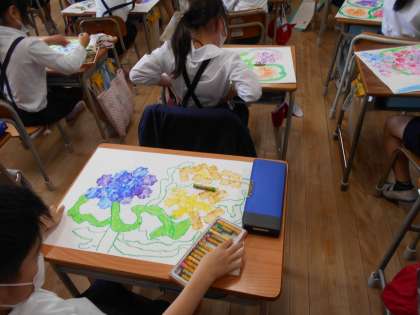 2組 図画工作科「パスをつかって あじさいをかこう」