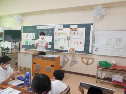 児童は「夏」においしくなる野菜の実物を見て、とても嬉しそうでした。