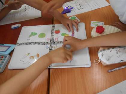 そして、「春」から「冬」のそれぞれの季節で「旬」を迎える野菜の仲間分けをして、学校の給食は「旬」な野菜をたくさん使っていることを知りました。