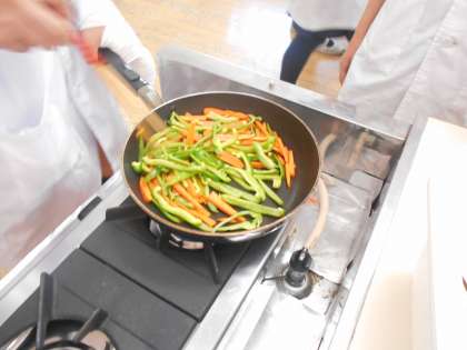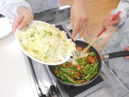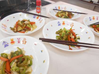 フライパンで炒めて塩コショウで味付けをし、お皿に盛り付けてできあがりました。