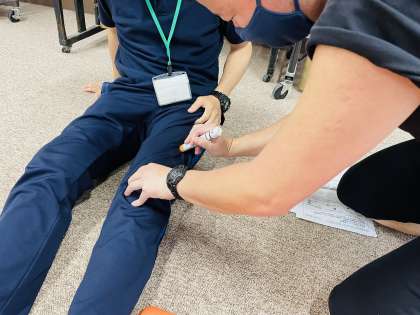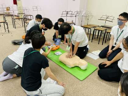 水泳学習の前に、教職員で救急救命講習を行いました。