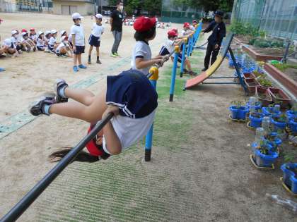 足を高く蹴り上げることや、お腹を鉄棒から離さないようにして回ることを意識しました。