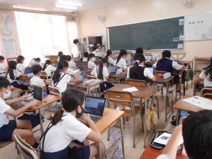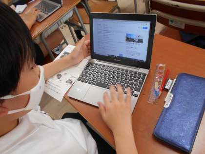 そして、1人1台パソコンで行き先である「大阪市立科学館」のことを調べました。