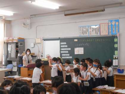 そして、3文字と5文字の言葉を見つけて、その言葉を言いながらみんなで手拍子をしました。