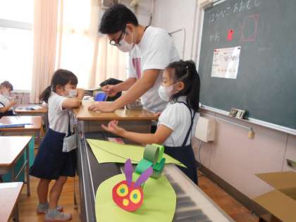 「はらぺこあおむし」に登場する「あおむし」を作りました。