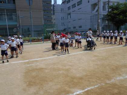 マスクを外したり、途中で水分補給をしたりして、熱中症対策をしながら学習を進めました。