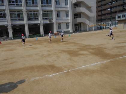 スキップをしたり、ボールを持ったりして、様々なパターンで走りました。