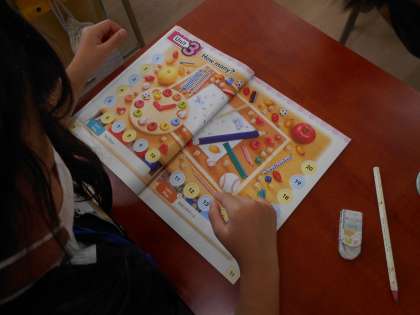 「How many○○?」と聞かれ、その○○を教科書から探し、その数を英語で答える活動をしました。