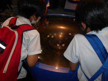 プラネタリウムで星や月、太陽の動きを見たり、グループで館内の展示物を見たり体験したりしました。