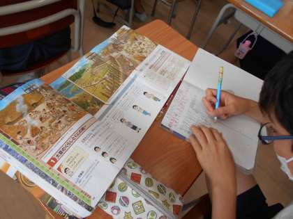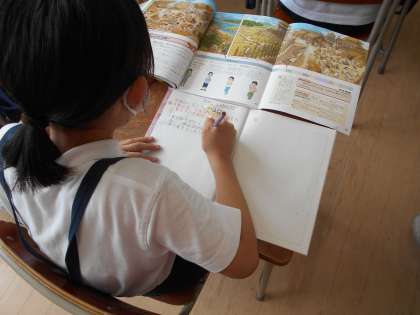 食料を確保する方法や建物の形、人々の服装など教科書のイラストを見て気づいたことをノートにまとめることができました。