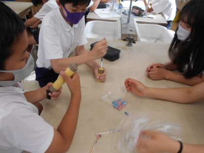 班で協力して、安全に気をつけながら実験を進めることができました。