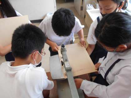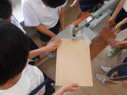 そして、下絵を描いた板を電動のこぎりで切りました。