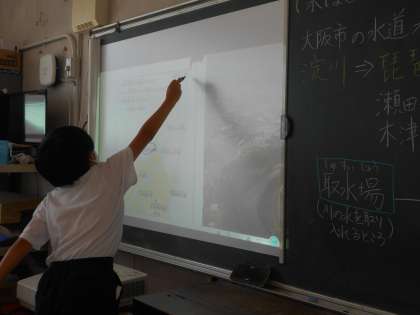 水源をたどると、滋賀県の琵琶湖からきていることを知り、驚いたようすでした。
