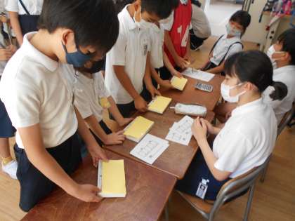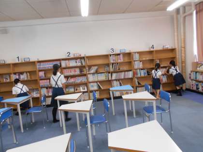 図書室の中に隠された折り紙でできた宝を見つけます。