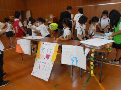 たてわり班で協力してお店の当番をしたり、お店で遊んだりしました。