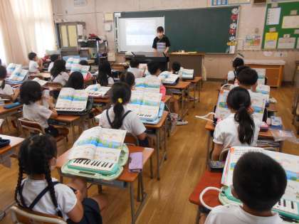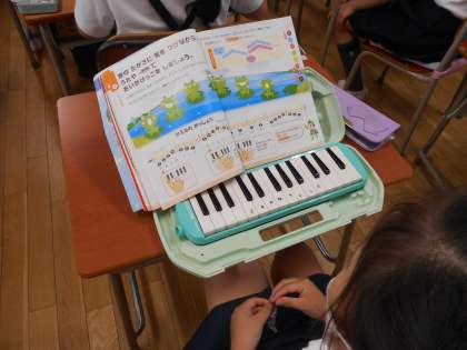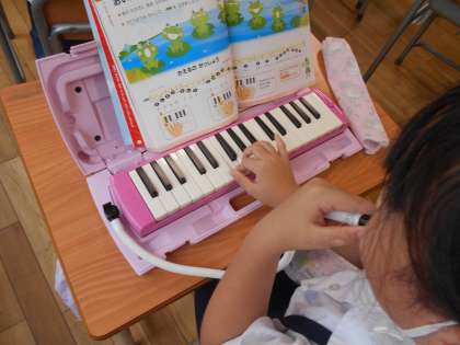 鍵盤ハーモニカで「かえるのがっしょう」を演奏しました。