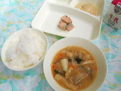 給食では、煮物にしたり、みそ汁やスープに入れたりします。