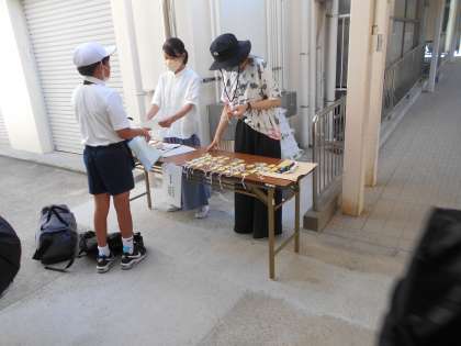 登校した児童は、健康観察の確認をしてもらいました。