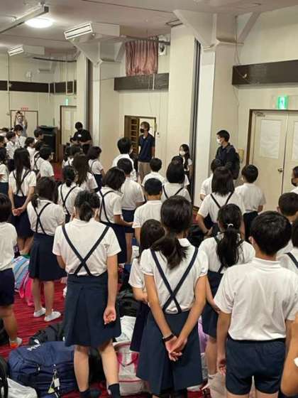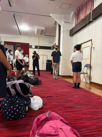 大広間で閉舎式をしました。代表の子どもが宿舎の方に感謝の言葉を伝えています。お世話になりました。
