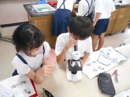 教科書や動画を見て、顕微鏡のパーツの名前や使い方を学びました。