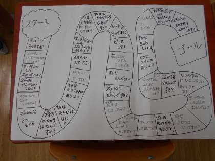 サイコロをふって、止まったマスの指示に従ってゲームを進めました。