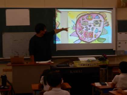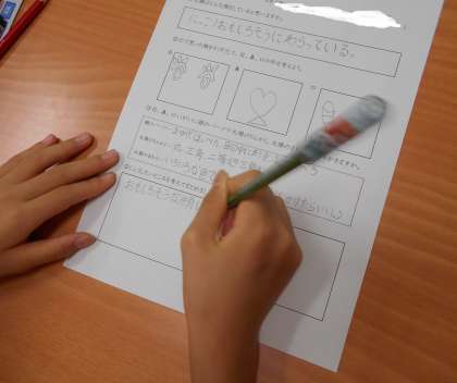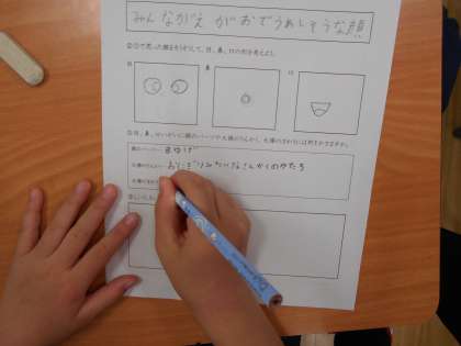 過去の作品の写真を参考にして、太陽の顔の輪郭や目、鼻、口などを、どのような形にするのか構想を練りました。