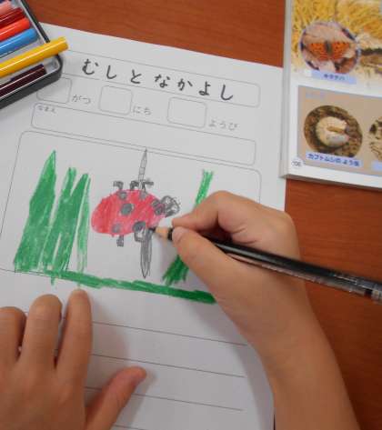 セミやカブトムシ、テントウムシなどについて絵と文で記録していました。