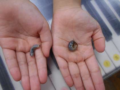 そして、教室で飼育しているカブトムシの幼虫も観察しました。
