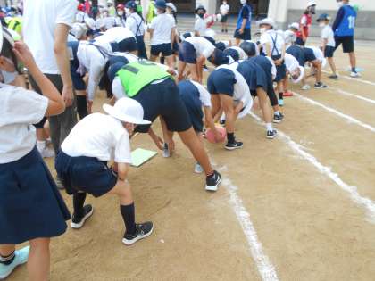 ボールを後ろへ送るときは頭の上を通し、前へ送るときは股の下を通して送りました。