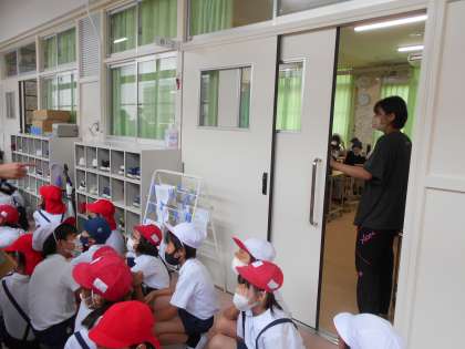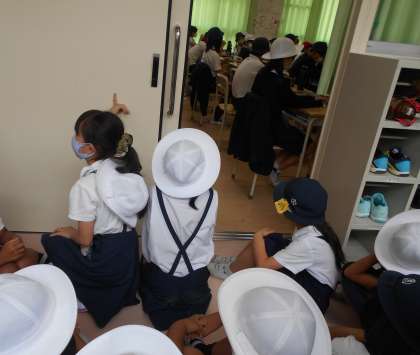 全員の避難が完了すると、放送で校長先生のお話が流れました。