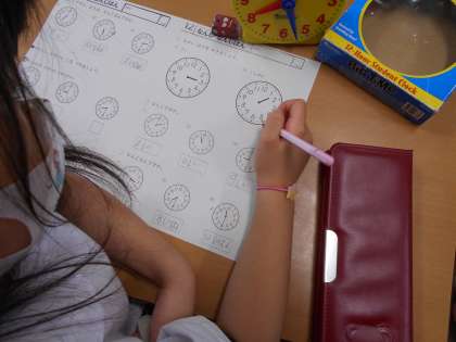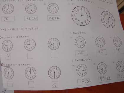 短い針と長い針がどこを指しているかをよく見て答えることができました。