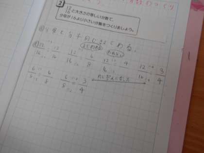 分子と分母を同じ数でわるとよいことに気づくことができました。